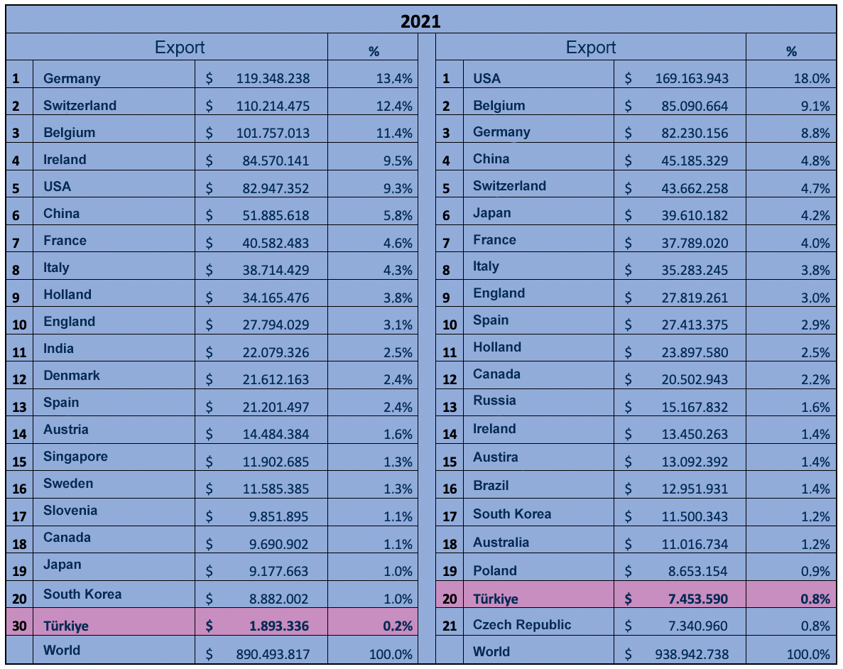 Therefore, a comparative analysis of Türkiye's foreign trade with other countries reveals that imports are not high in absolute terms, but that we are negatively differentiated from other countries due to our relatively low pharmaceutical exports.