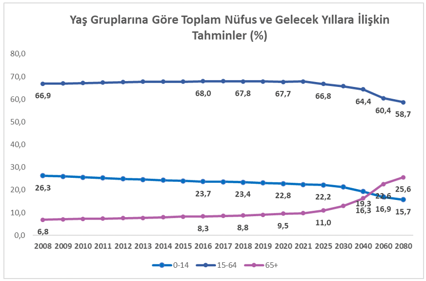 yaşlanan toplum iken, TUİK’in tahminlerine göre 2040 sonrası süper yaşlanan