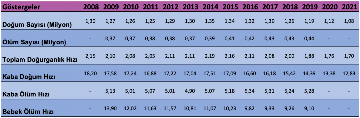 2,0 olan toplam doğurganlık hızı, 2021 yılında 1,70’e düşmüştür. Bilindiği