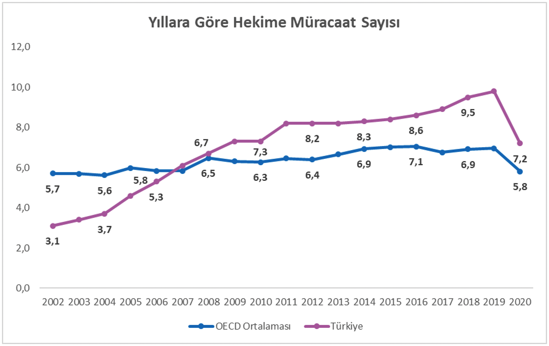 iken 2020 de 3,8’e yükselirken, hekime müracaat sayısı ise aynı yıllar