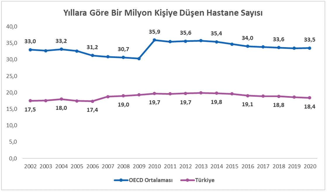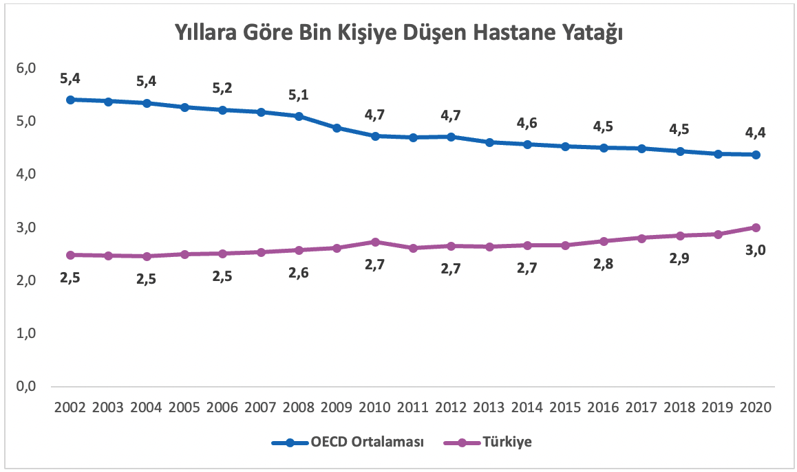 kişiye düşen hastane yatağı sayısı verilerinde de anılan dönemde iyileşme